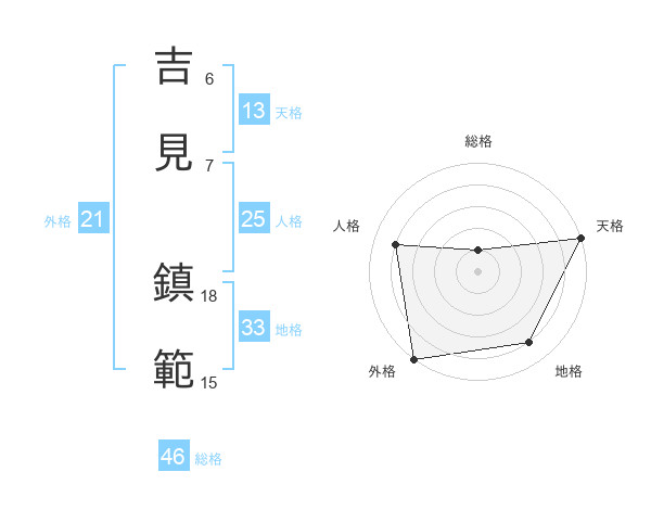 吉見 鎮範さんを姓名の画数から五運を鑑定
