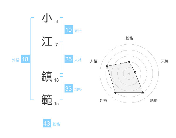 小江 鎮範さんを姓名の画数から五運を鑑定