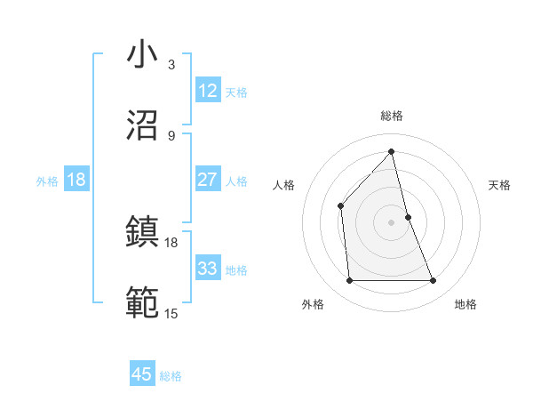 小沼 鎮範さんの総格は45画の4点!