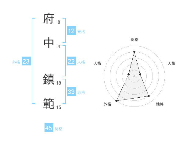 府中 鎮範さんの総格は45画の4点!