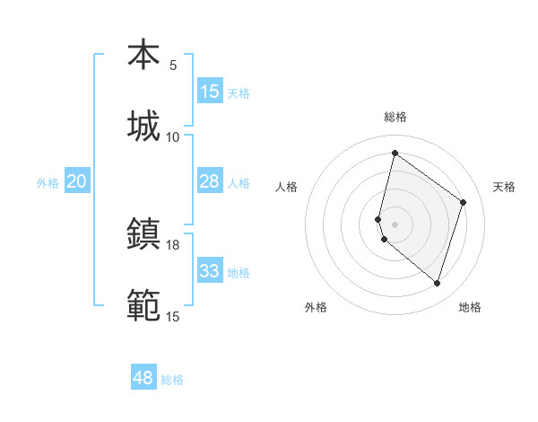 本城 鎮範さんの総格は48画の4点!
