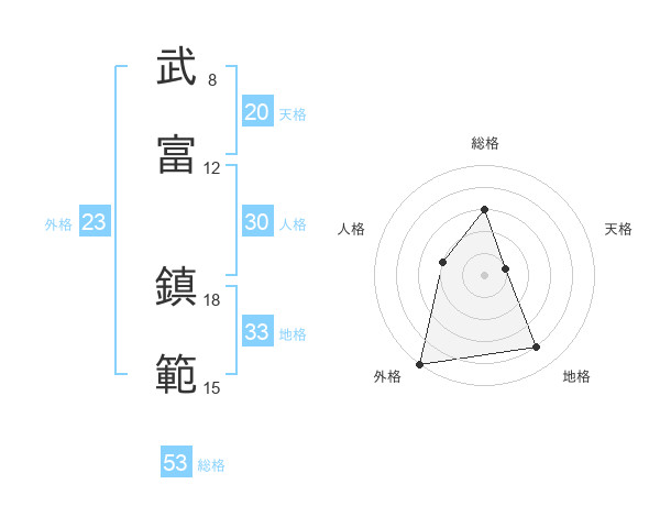 武富 鎮範さんの総格は53画の3点!