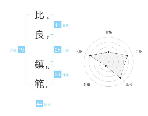 比良 鎮範さんの総格は44画の2点!