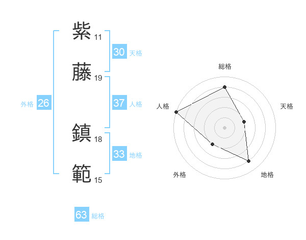 紫藤 鎮範さんの総格は63画の4点!