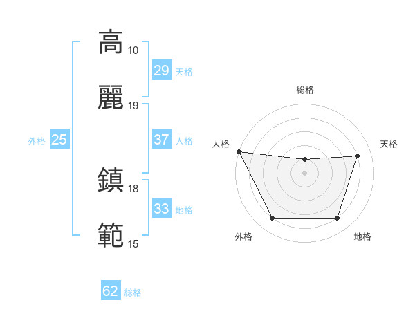 高麗 鎮範さんの総格は62画の1点!