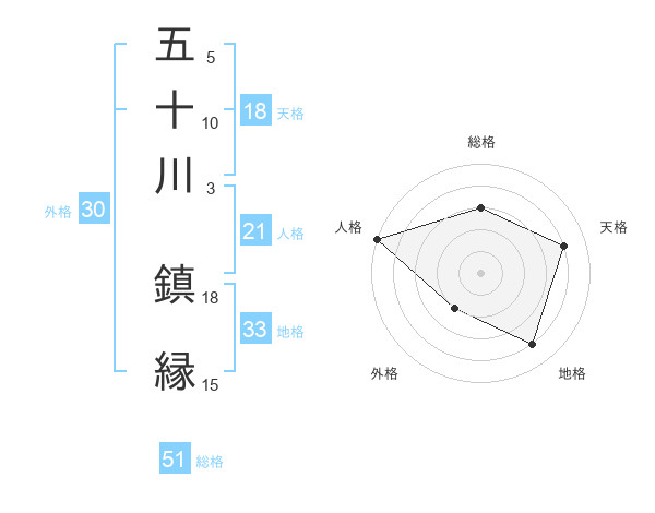 五十川 鎮縁さんの総格は51画の3点!