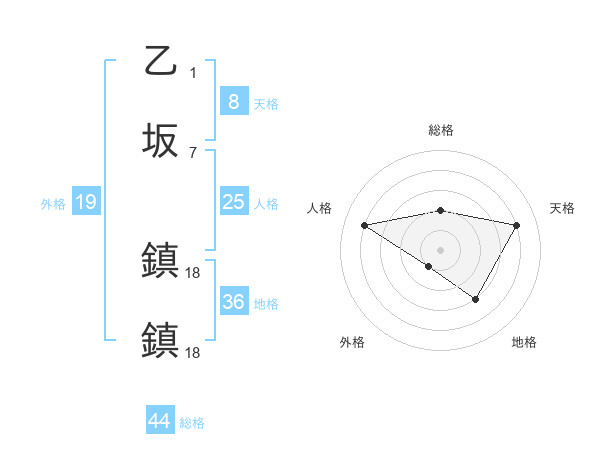 乙坂 鎮鎮さんを姓名の画数から五運を鑑定