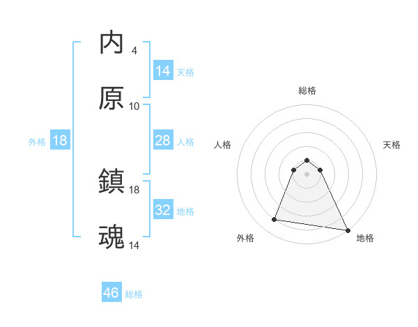 内原 鎮魂さんの総格は46画の1点!