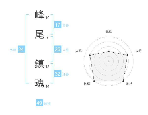 峰尾 鎮魂さんを姓名の画数から五運を鑑定