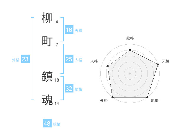 柳町 鎮魂さんを姓名の画数から五運を鑑定