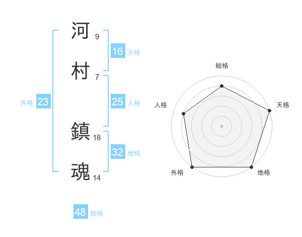 河村 鎮魂さんを姓名の画数から五運を鑑定