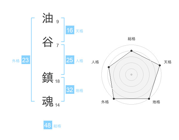 油谷 鎮魂さんの外格は23画の5点!