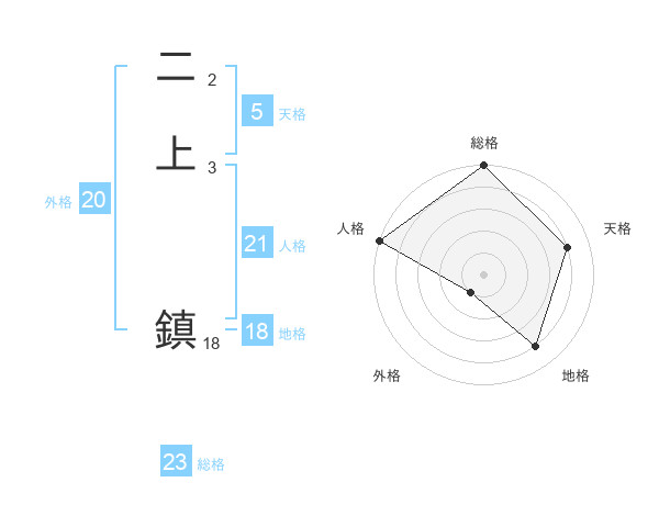 二上 鎮さんの総格は23画の5点!