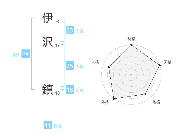 伊沢 鎮さんの総格は41画の5点!