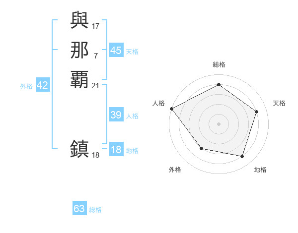 與那覇 鎮さんの天格は45画の4点!