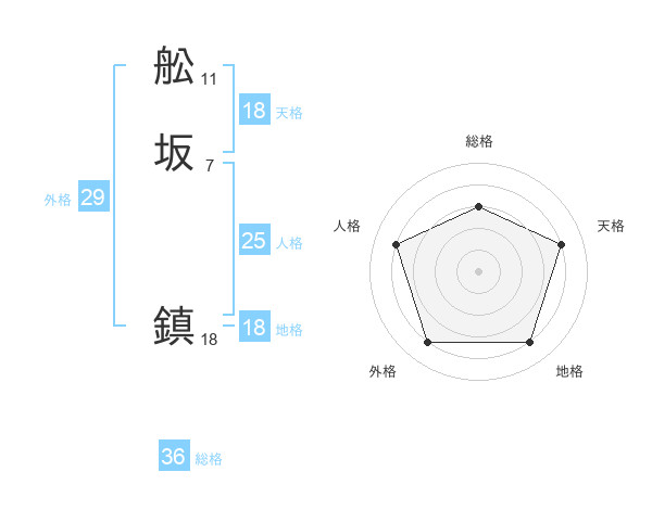 舩坂 鎮さんを姓名の画数から五運を鑑定