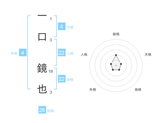 一口 鏡也さんを姓名の画数から五運を鑑定