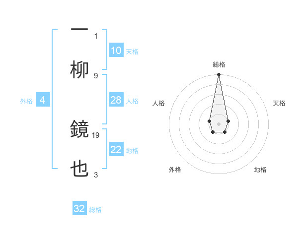 一柳 鏡也さんの総格は32画の5点!