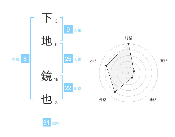 下地 鏡也さんを姓名の画数から五運を鑑定