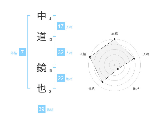 中道 鏡也さんの総格は39画の5点!