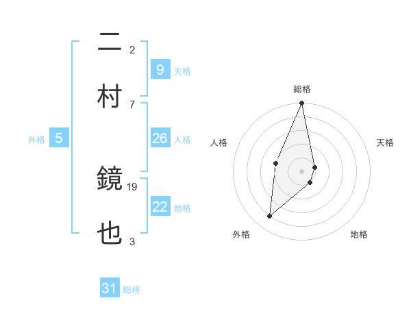 二村 鏡也さんを姓名の画数から五運を鑑定