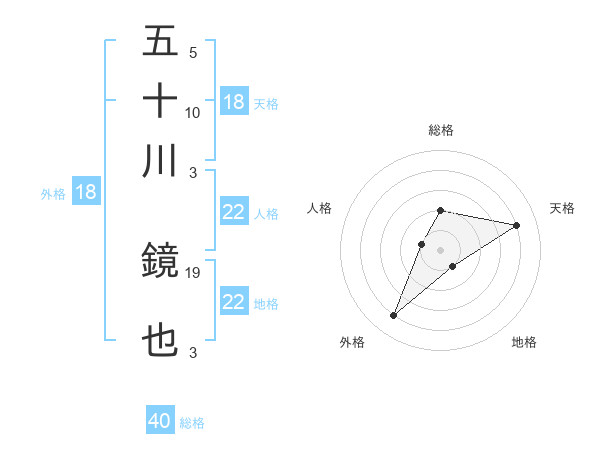 五十川 鏡也さんを姓名の画数から五運を鑑定