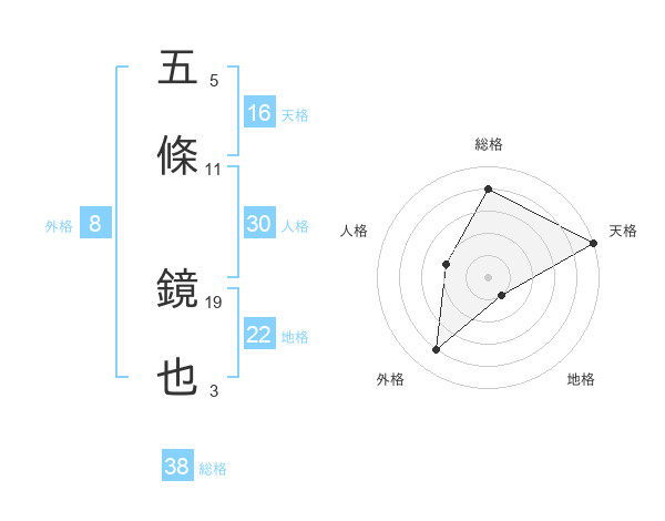 五條 鏡也さんを姓名の画数から五運を鑑定