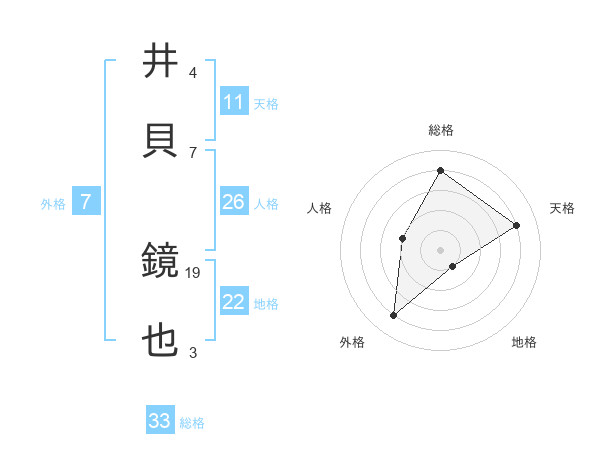 井貝 鏡也さんの天格は11画の4点!