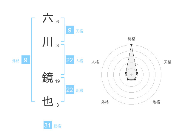 六川 鏡也さんの総格は31画の5点!