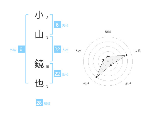 小山 鏡也さんの総格は28画の1点!