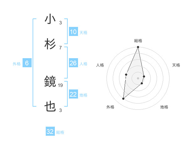 小杉 鏡也さんの総格は32画の5点!
