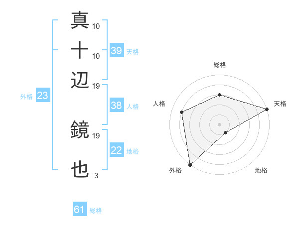 真十辺 鏡也さんの総格は61画の3点!