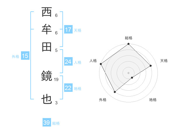 西牟田 鏡也さんを姓名の画数から五運を鑑定