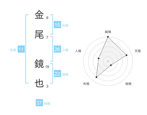 金尾 鏡也さんの総格は37画の5点!