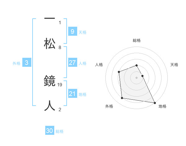 一松 鏡人さんの地格は21画の5点!