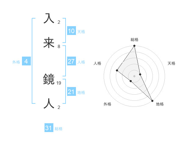 入来 鏡人さんの総格は31画の5点!
