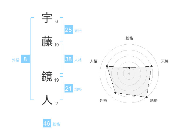 宇藤 鏡人さんの総格は46画の1点!