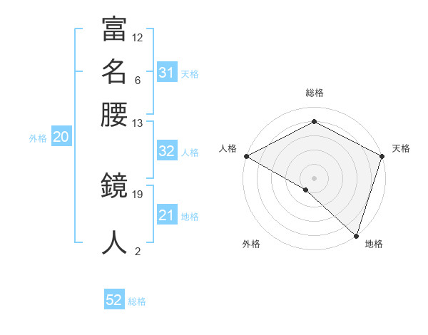 富名腰 鏡人さんを姓名の画数から五運を鑑定