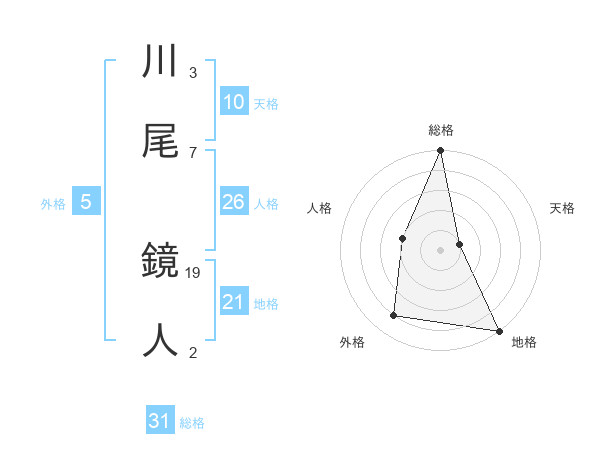 川尾 鏡人さんの総格は31画の5点!