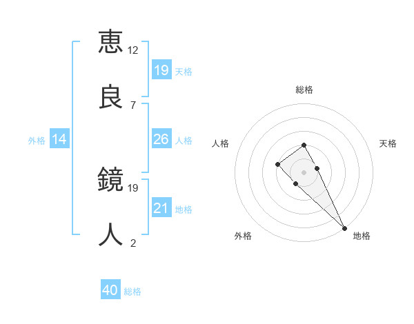 恵良 鏡人さんの天格は19画の1点!