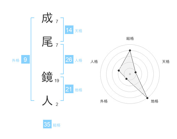 成尾 鏡人さんを姓名の画数から五運を鑑定