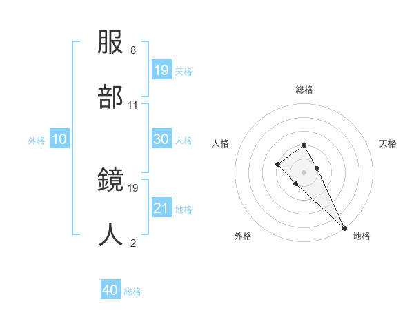 服部 鏡人さんの総格は40画の2点!