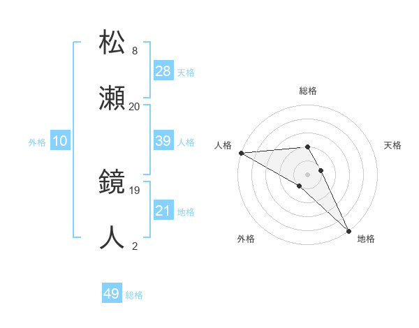 松瀬 鏡人さんの総格は49画の2点!