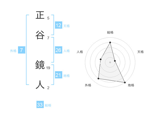 正谷 鏡人さんの総格は33画の4点!
