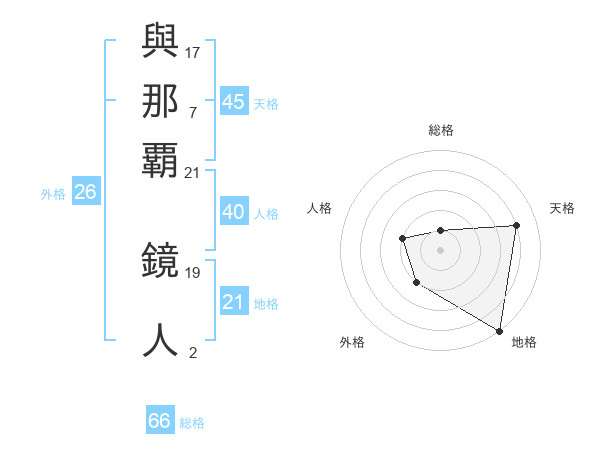 與那覇 鏡人さんの天格は45画の4点!