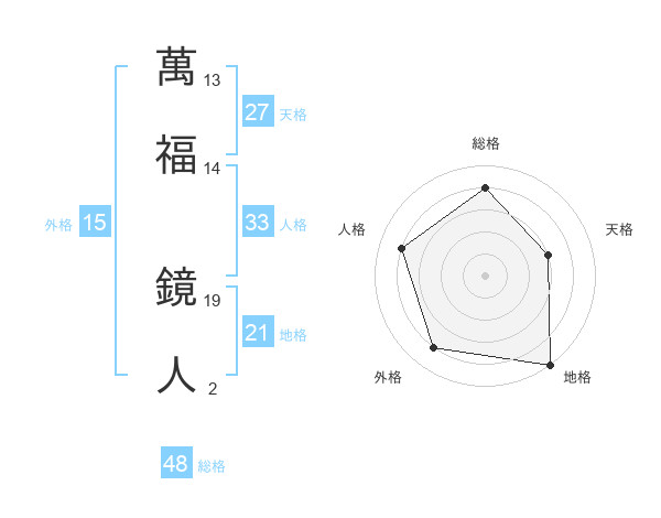 萬福 鏡人さんの総格は48画の4点!