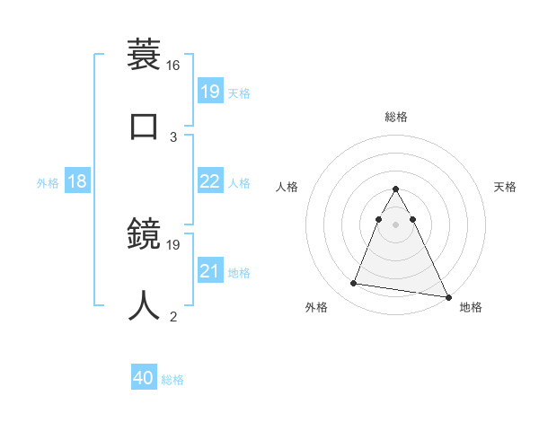 蓑口 鏡人さんの総格は40画の2点!