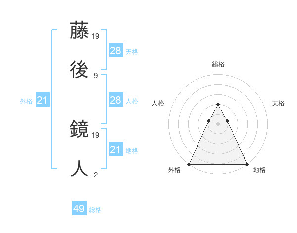 藤後 鏡人さんの総格は49画の2点!