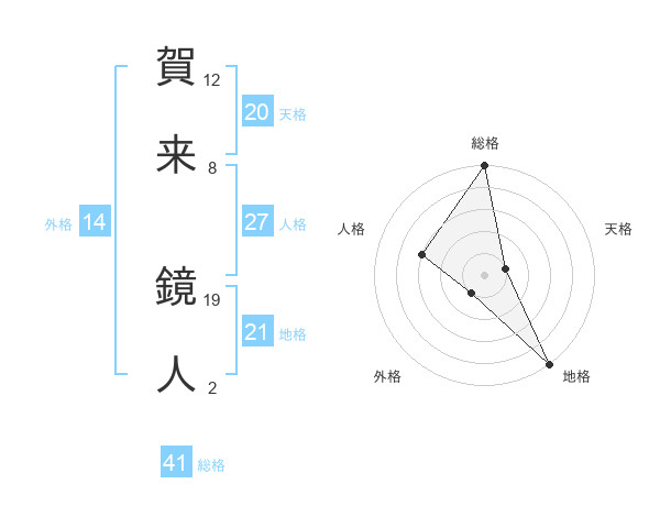賀来 鏡人さんの総格は41画の5点!