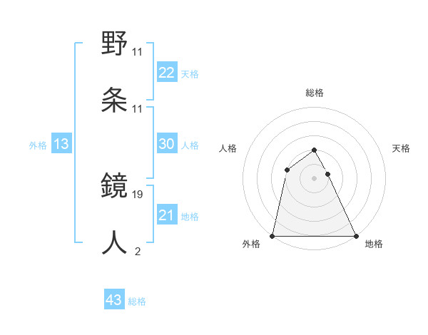 野条 鏡人さんの外格は13画の5点!